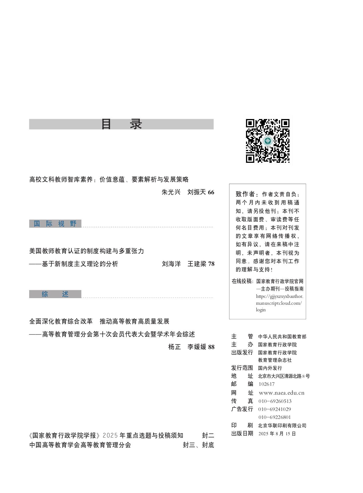 《国家教育行政学院学报》2025年第8期(总第332期)
