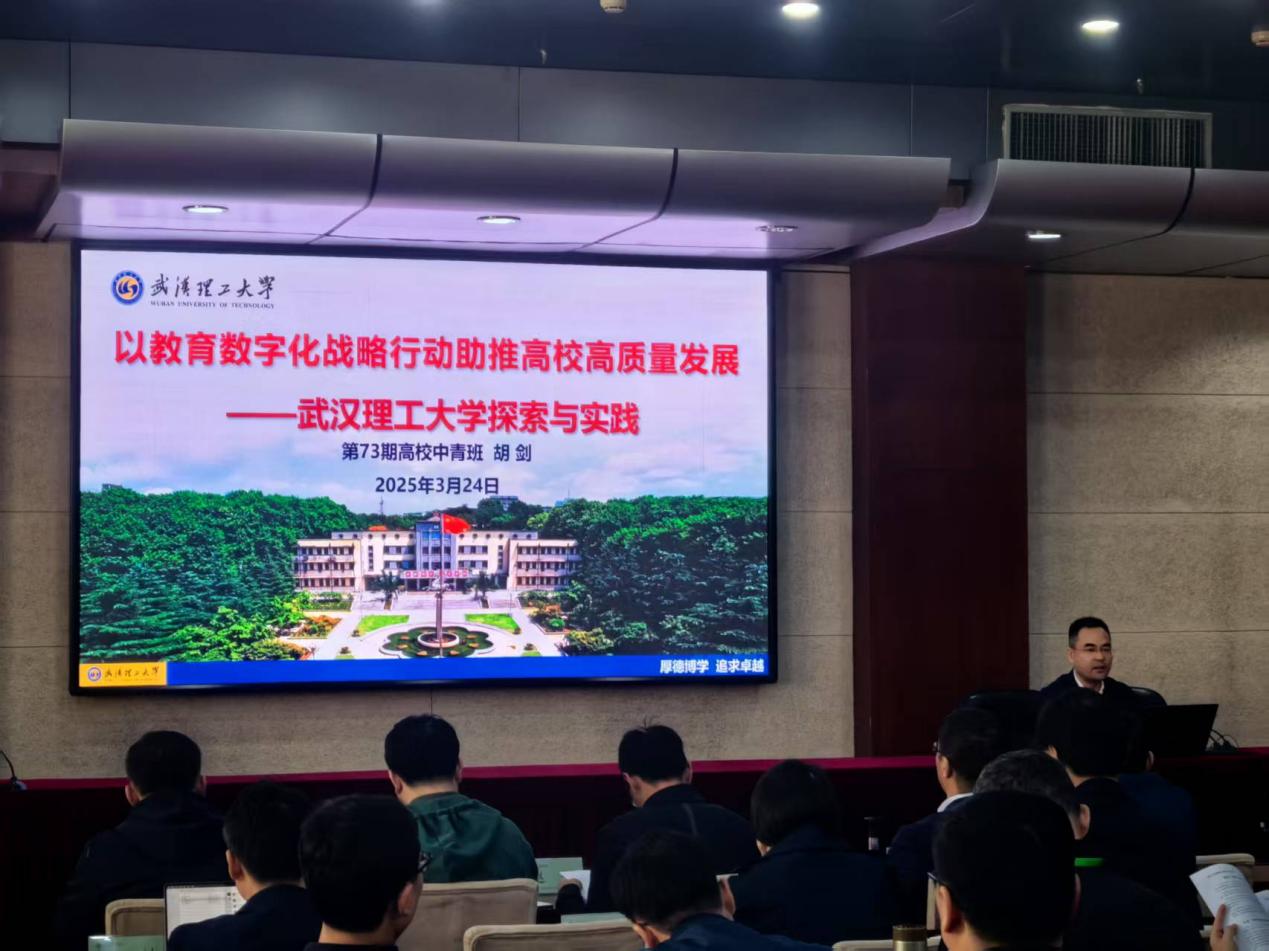 ??一班学员、武汉理工大学校长助理胡剑以《以教育数字化战略行动助推高校高质量发展——武汉理工大学探索与实践》为主题进行了交流分享。他对标数字中国、教育强国重大战略,深刻阐述了教育数字化的重要意义,结合武汉理工大学的教育数字化发展变革全面细致讲述了学校实施数字赋能的作用发挥和实践运行成效,为学员们拓展了新时代教育数字化发展建设新空间,同时也为各高校在数字化建设中遇到的共性问题进行了探讨与交流。