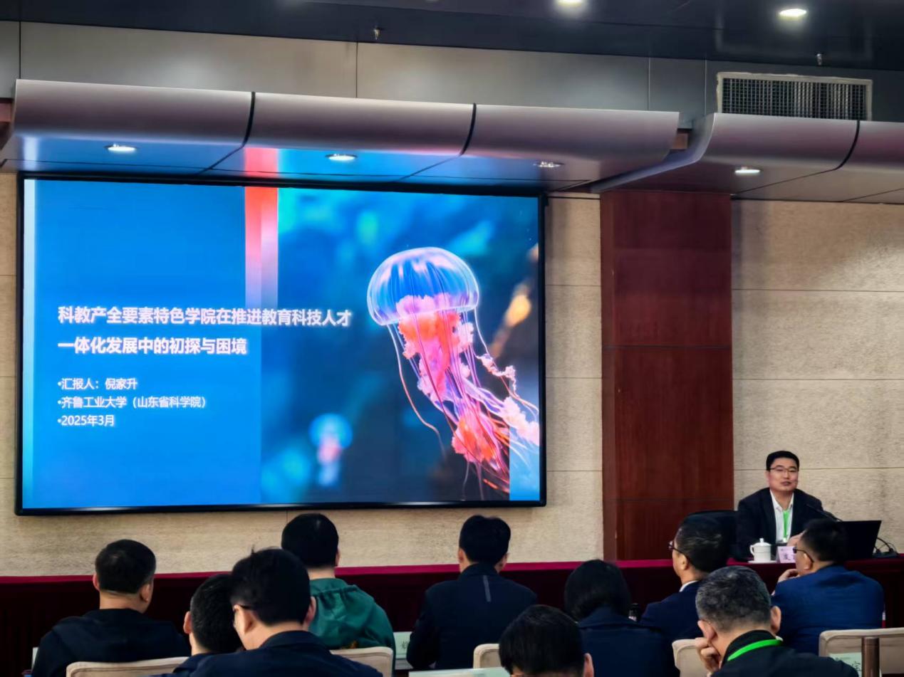 ??四班学员、齐鲁工业大学(山东省科学院)光电科学与技术学部常务副主任倪家升以《科教产全要素特色学院在推进教育科技人才一体化发展中的初探与困境》为主题,从学校发展历程、人才培养、科教赋能、产教融汇等方面进行了交流。他表示,齐鲁工业大学(山东省科学院)紧紧围绕省委、省政府“走在前、挑大梁”目标任务,着力打造高水平大学建设的“八大体系”,厚植科教融汇“最大优势”,释放产教融合“最大效能”,打造科教融合优势特色,已成为山东省新型工业科技创新及人才培养领域的重要力量。未来,希望能与更多高校一起携手,共谱高校科技赋能新篇章。