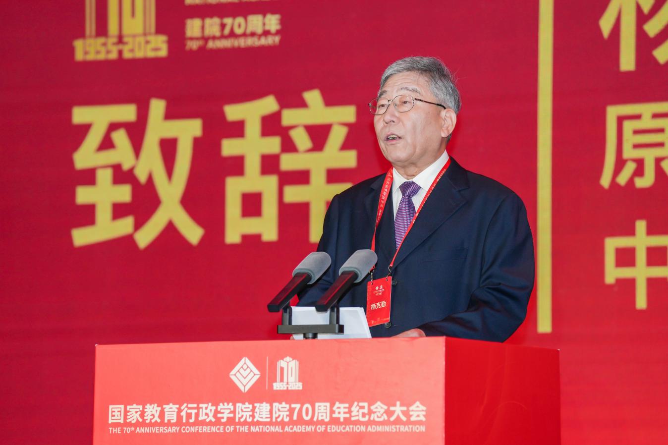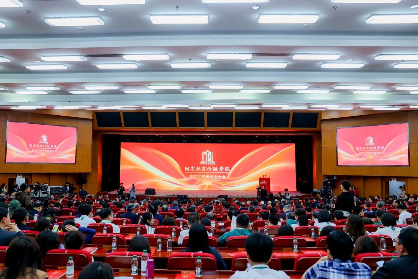 ??兴教强国铸伟业,七秩干训谱华章。4月26日的国家教育行政学院,繁花映衬、弦歌激扬,处处洋溢着热烈喜庆的节日氛围。上午9时,国家教育行政学院建院70周年纪念大会在逸夫报告厅隆重举行。学院全体教职工、在训学员、历届校友和关心支持学院建设与发展的各界人士相聚线下线上,共襄盛会,共同回顾七十载干训光辉历程,携手迈向教育强国建设伟大征程。