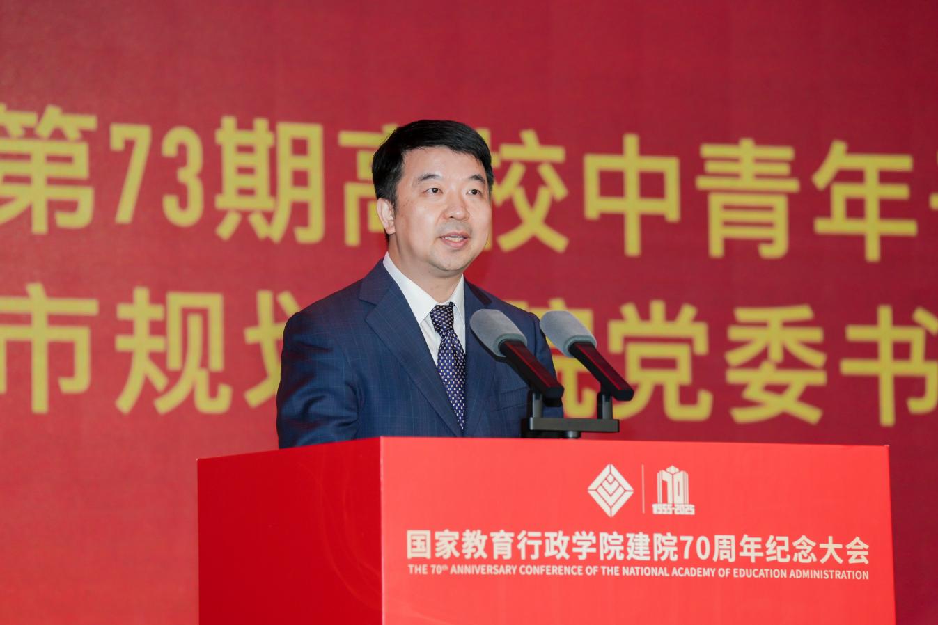 ??教育部党组成员、副部长徐青森对国家教育行政学院全体教职工和学员表示热烈祝贺和诚挚问候。他指出,作为我国教育系统唯一一所独立设置的国家级教育干部培训院校,70年来特别是党的十八大以来,学院秉持“实事求是 知行合一”的校训精神,培训培养了1700余万教育系统干部教师,为国家教育事业改革发展注入源源不断的活力。他强调,在建设教育强国的新征程上,学院要全面贯彻落实习近平总书记关于教育的重要论述和有关重要指示精神,提高站位、找准方位、明确定位;要自觉坚守初心,切实发挥教育系统干部教师培训主阵地作用,加强自身建设,深化改革创新,强化质量立院、人才强院、从严治院、开放兴院,不断开拓事业发展新局面。