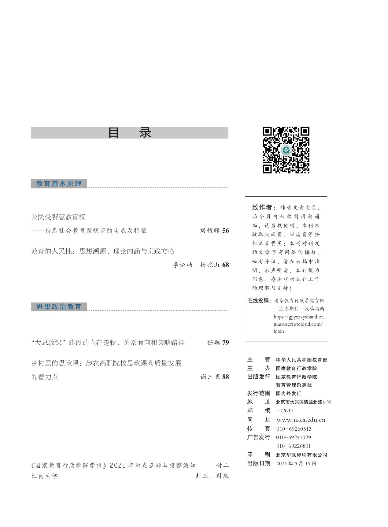 《国家教育行政学院学报》2025年第5期(总第329期)