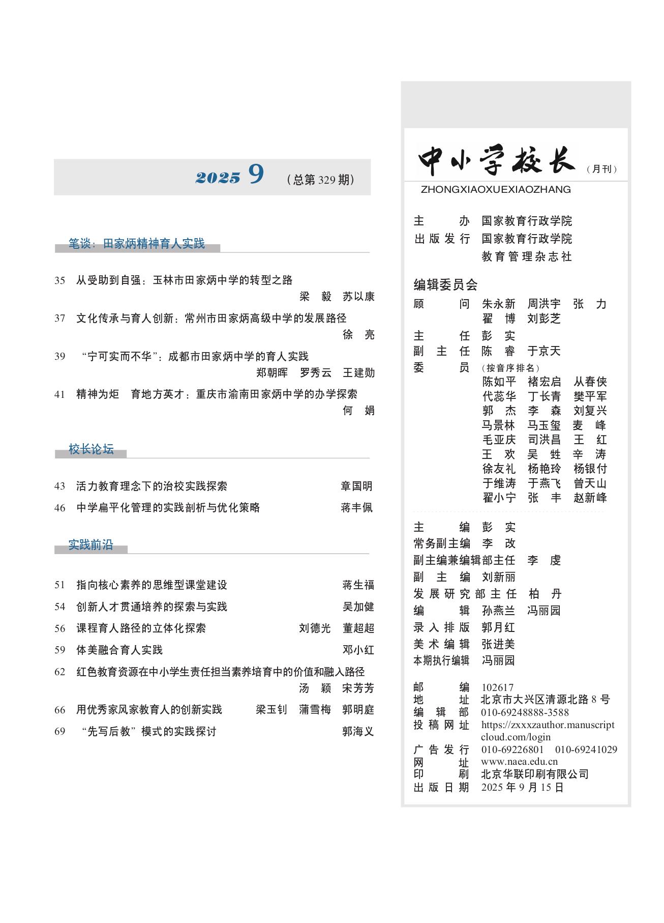 《中小学校长》2025年9期(总第329期)