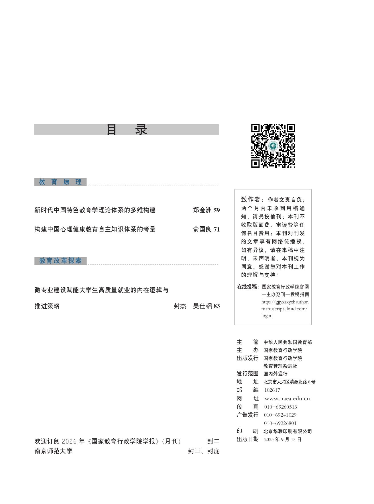 《国家教育行政学院学报》2025年第9期(总第333期)